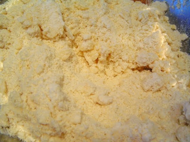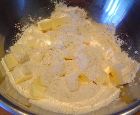 Mezclamos la harina con la sal y añadimos la mantequilla troceada.