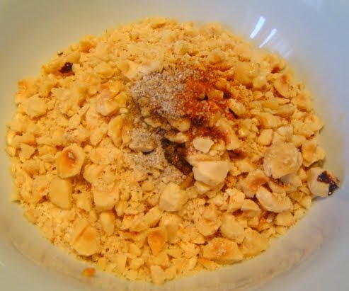 Las avellanas con un poco de pimentón y pimienta dan un toque crujiente y picante