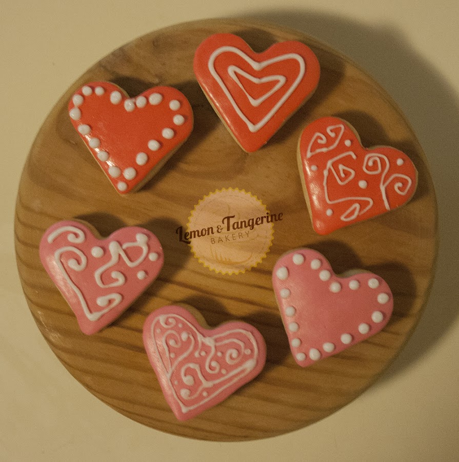 Mi pulso de octogenario las pasó canutas con la boquilla del 1 de Wilton y la glasa de delineado. Intenté hacer una especie de imitación de bordado megaguay que al final se quedó en un poco... no sé, algo raro. La última que hice fue la rosa con las perlitas, que me quedó mucho mejor que las demás porque ya apreté para romper con la bolsa y con todo.