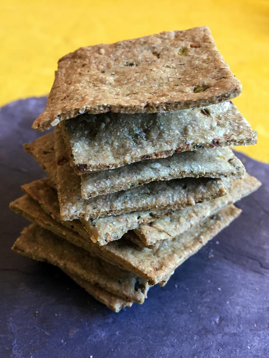 En un bol, ponemos la harina y añadimos todos los ingredientes secos, el orégano, las semillas, la sal, la pimienta y los tomates secos picados.