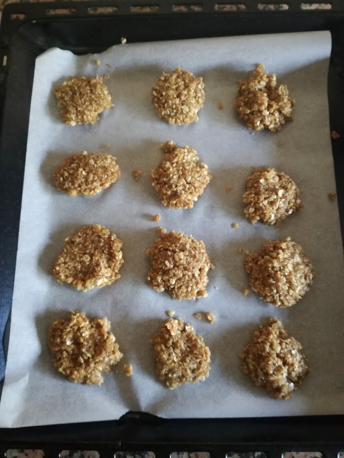 En una bandeja cubierta con papel de horno y con la ayuda de una cuchara, colocamos pequeñas porciones de la mezcla y a continuación las aplastamos con la palma de la mano.