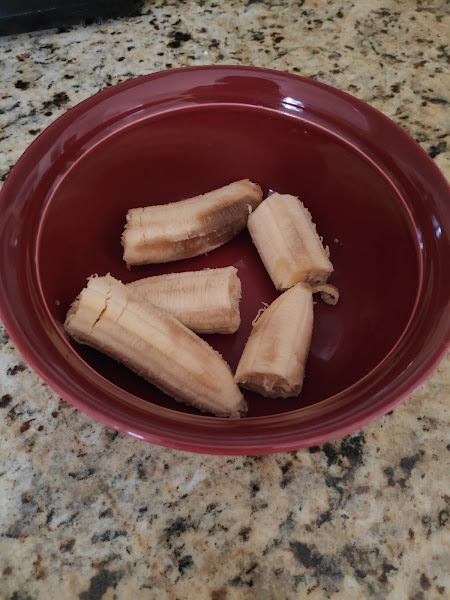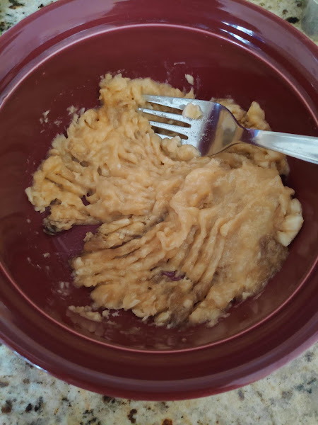 Primero, machaca los plátanos con un tenedor hasta tener un puré.