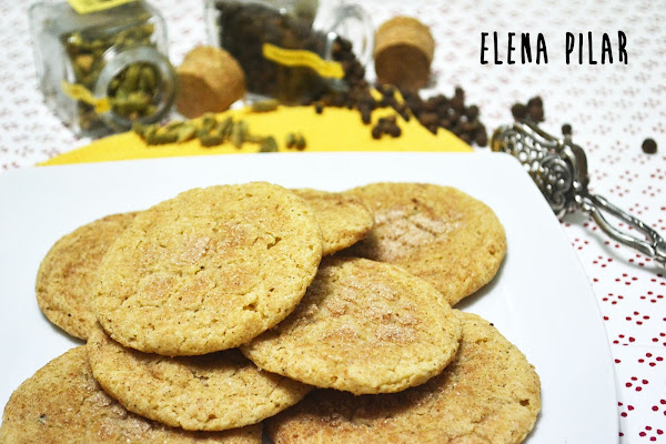 Dividimos la masa en 12 partes iguales, y les damos forma de bola lisa. Las pasamos por el plato con el azúcar especiado, y las colocamos sobre la bandeja de horno que tenemos preparada. Las aplastamos ligeramente con el pulgar, y les espolvoreamos una cantidad extra de mezcla de azúcar y especias.