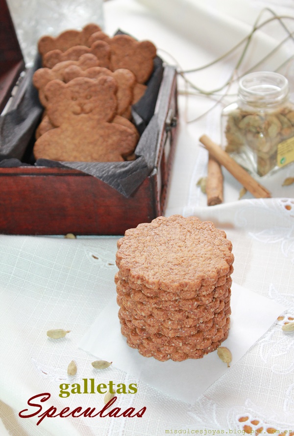Las galletas Speculaas o Spéculoos son una especie de galletas navideñas típicas de los países del norte de Europa, especialmente muy tradicionales en Bélgica y Holanda. La principal característica de estas galletas es que suelen tener formas o motivos que evocan la historia navideña del famoso personaje navideño San Nicolás de Bari. Para conseguir su forma y aspecto tan peculiar se prensa la masa con unos moldes de madera, tallados con motivos navideños.