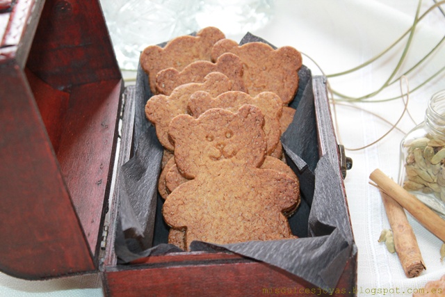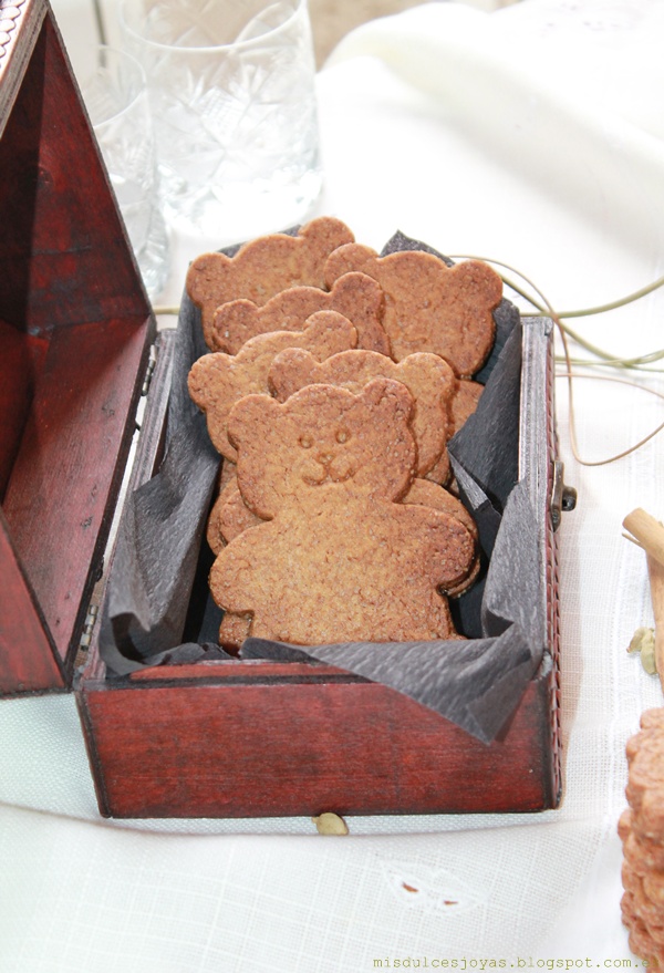 Como no tengo los auténticos moldes de madera para Spéculoos, he utilizado unos cortadores normales y corrientes. No tienen el auténtico aspecto de las galletas Spéculoos, pero se ven muy bonitas también.
