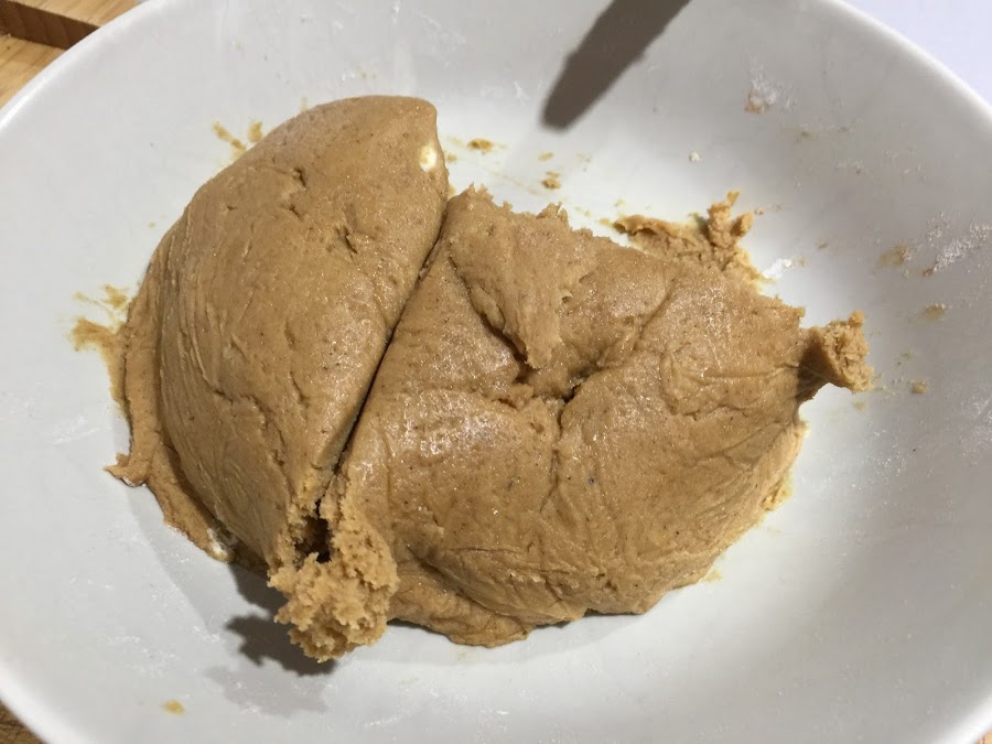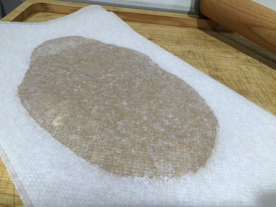 7. Una vez hayan pasado los 30 minutos. Dividimos nuestra masa en tres partes iguales. Poner cada una entre dos papeles vegetales. Con el rodillo estirar cada masa hasta que tengan un grosor de 6mm. Yo siempre utilizo rodillo regulable, para que queden perfectas.
