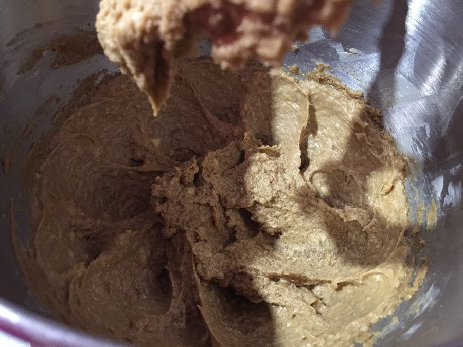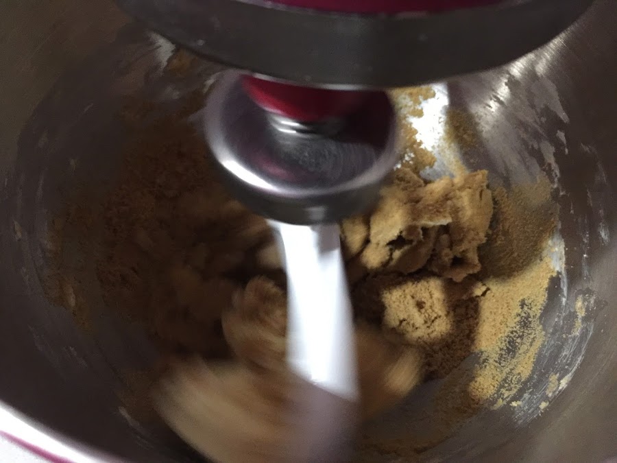3. En el bol de la KA añadimos el azúcar moscobado junto con la mantequilla en pomada. Batimos hasta que formen una masa homogénea.