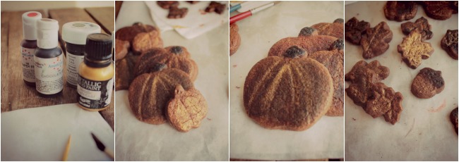 Para que fueran mucho más otoñales , las pinté con colorantes en gel y en polvo , diluyéndolos un poco en alcohol incoloro , le ui dando un poquito de color , que al secarse por completo se realzaron mucho más .