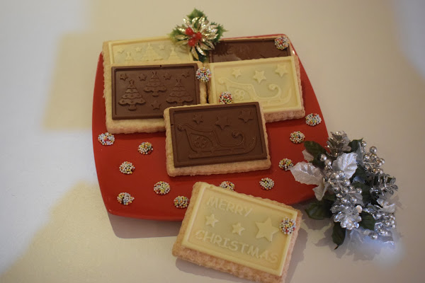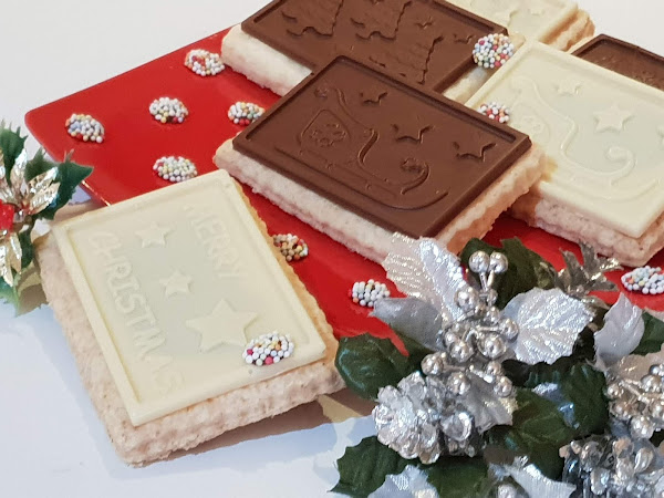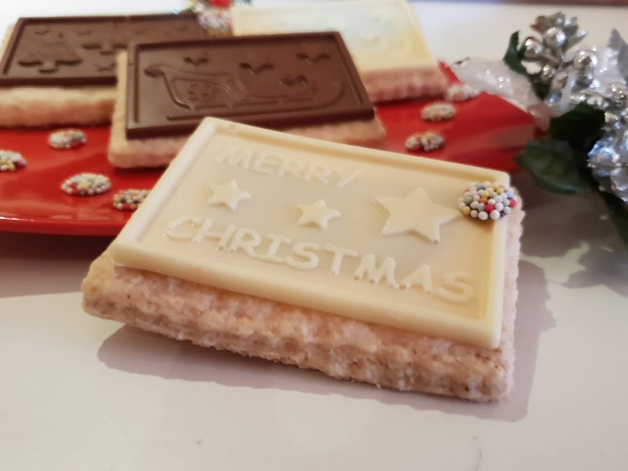 Ya tenemos las galletas horneadas y frías, y por otro lado ya tenemos el chocolate endurecido y fuera del molde.