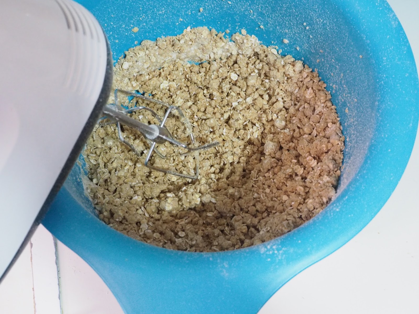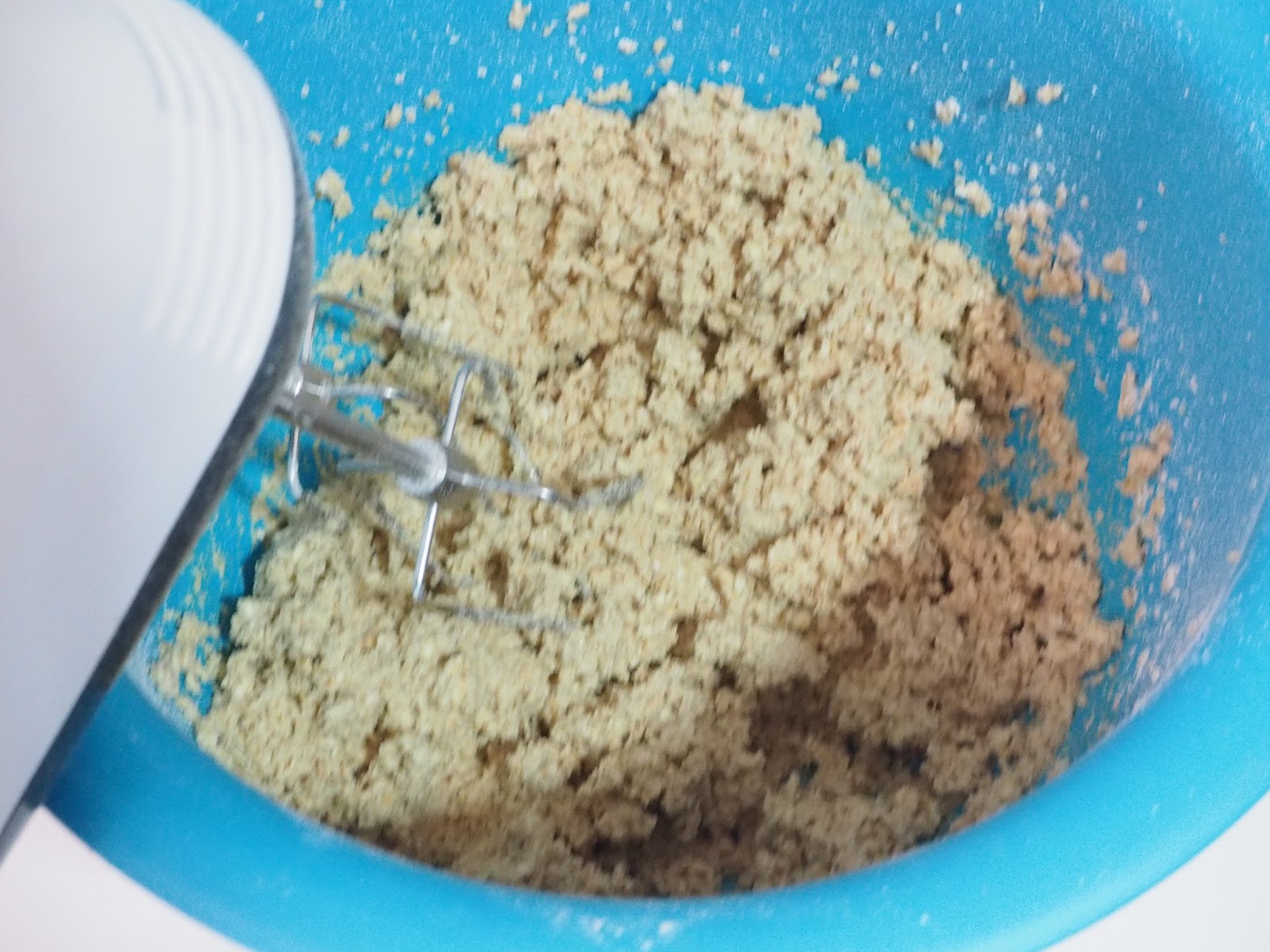 - Incorporamos poco a poco los ingredientes secos a los húmedos, con cuidado para evitar formar grumos. Vamos mezclando hasta obtener una masa compacta que quedará algo seca.