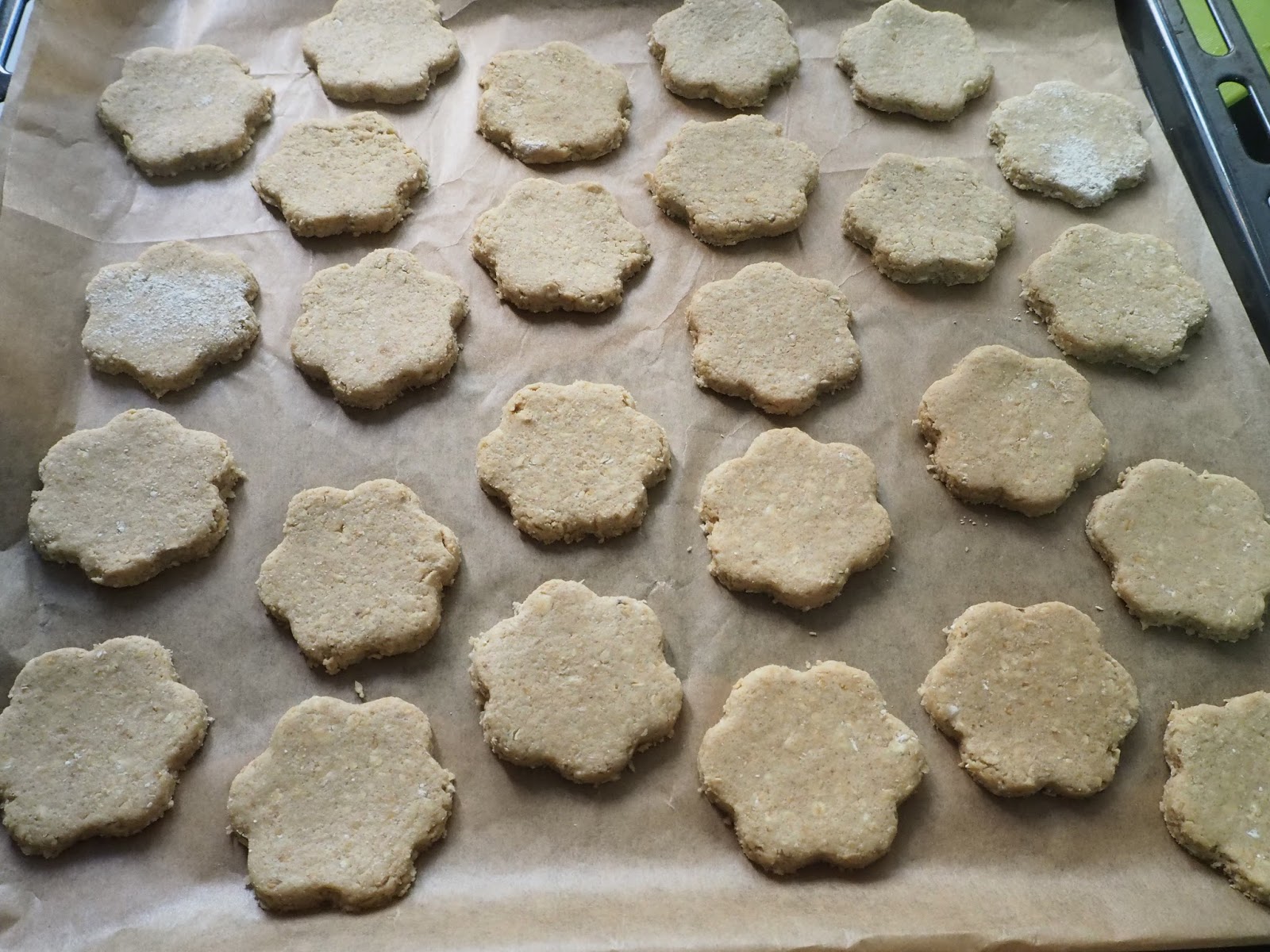- Colocamos las galletas en una bandeja de horno forrada con papel vegetal y metemos la horno ya caliente a 180ºC arriba y abajo entre 12 y 15 minutos. No conviene pasarse de tiempo para que no queden duras luego al enfriarse (yo las dejé 12 o 13 minutos). Si no so queréis arriesgar a que no se doren suficiente, a mitad de cocción o algo más podéis subir la bandeja de altura.