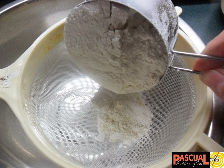 Por último, la harina, la sal y el polvo de hornear cernidos