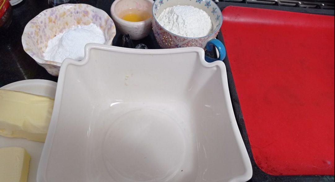 225 gr de manteca115 gr de azúcar ( use impalpable)