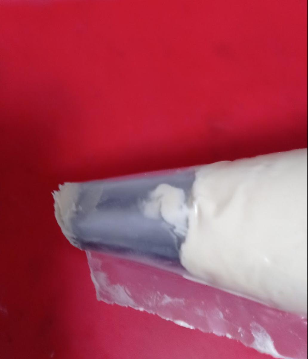 Poner en una manga con boquilla rizada de las grandes , si no tienes usa una descartable y corta la punta de unos 2 cm de ancho.