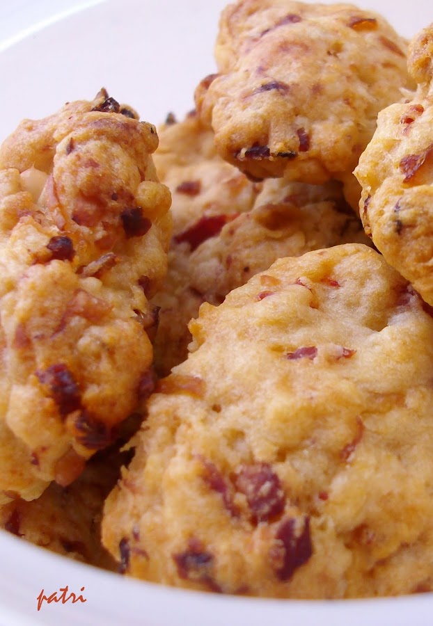 disponer en una bandeja de horno forrada con papel vegetal trocitos de masa..aplastandola con las manos..y hornear a 180 grados.15 minutos..o hasta que esten doradas..