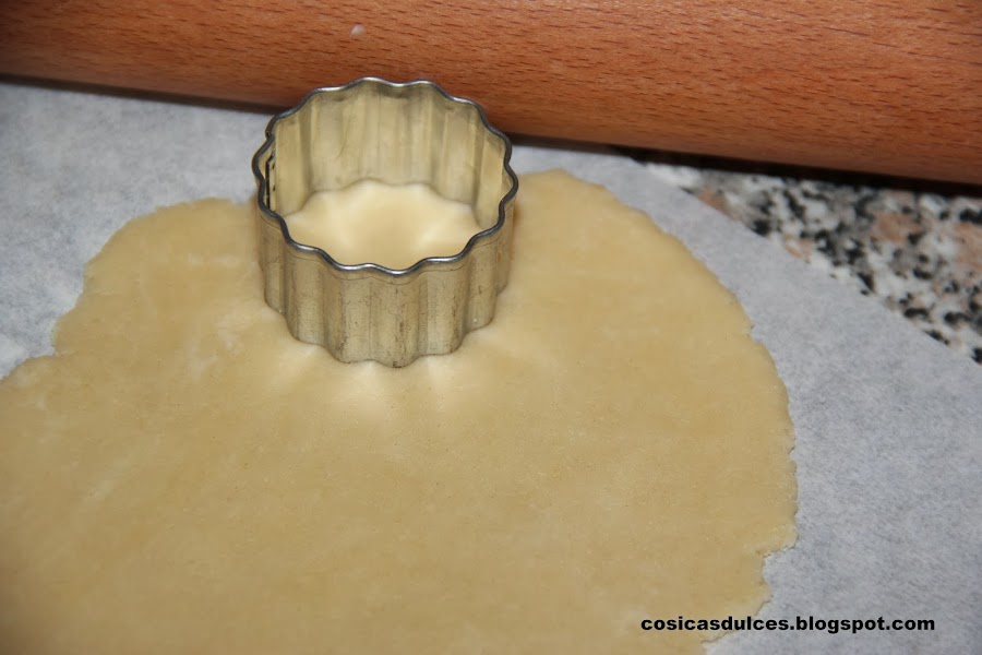 Con ayuda de un rodillo estiramos la masa dejándola bien finita (no más de 4 milímetros). Con ayuda de un cortapastas sacamos nuestras galletas (si las queréis como las originales con un molde redondo de cantos ondulados de 3,8 centímetros).