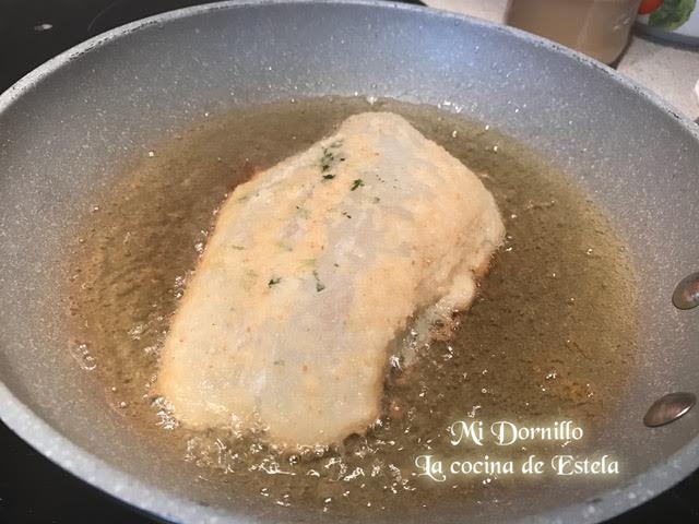 Salamos y pasamos por harina, y freímos en muy poco aceite. También podemos ponerlos a la plancha. Los hacemos 2 o 3 minutos por cada lado. Reservamos.