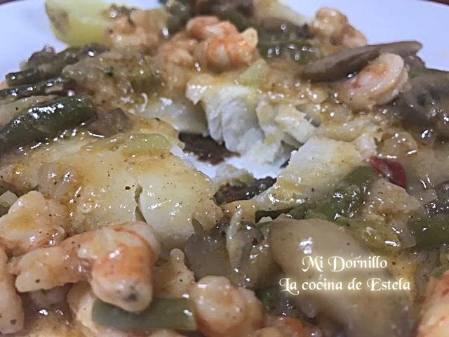 Añadimos los langostinos limpios y troceados, rehogamos.