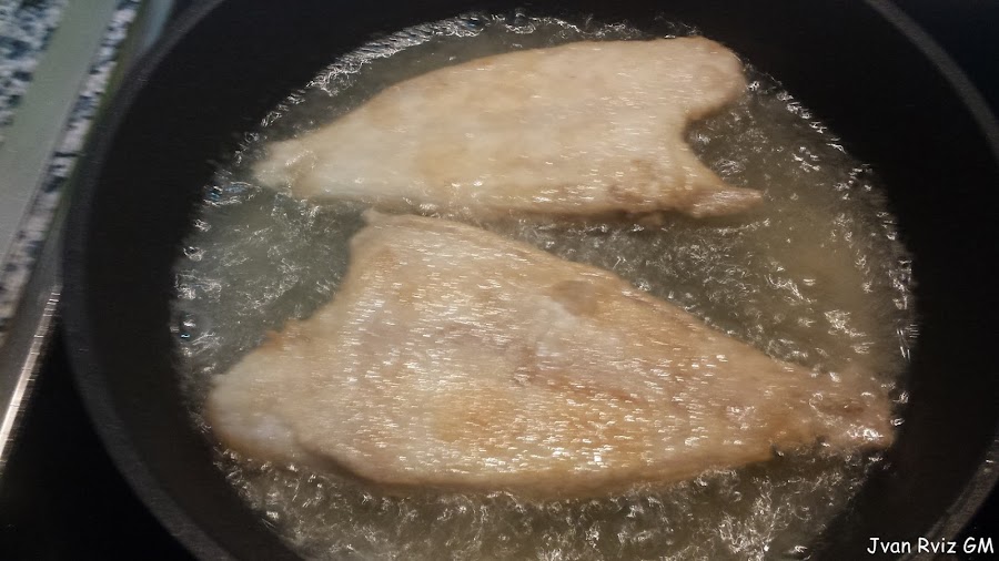 Limpiar los Gallos, salpimentar, enharinamos y sacudimos para quitar el exceso de harina y los freímos, los doramos por cada lado y los colocamos en platos.