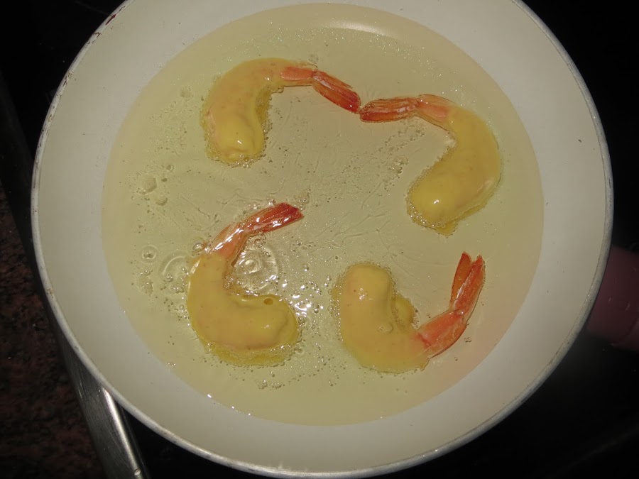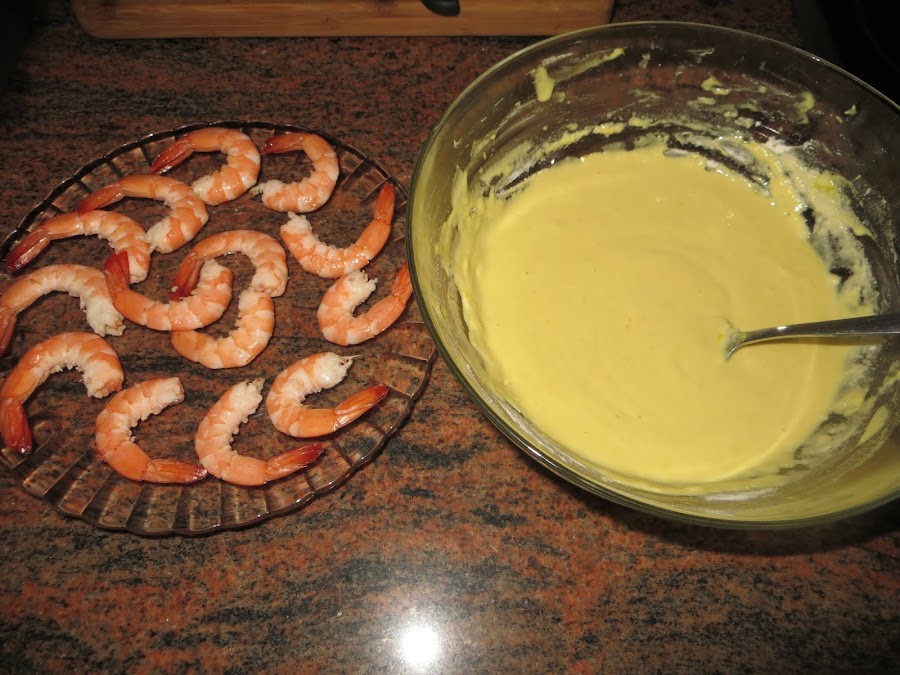 Lo primero que hacemos es pelar los langostinos o las gambas, le dejamos la cola y la parte final para luego poder mojarlas.