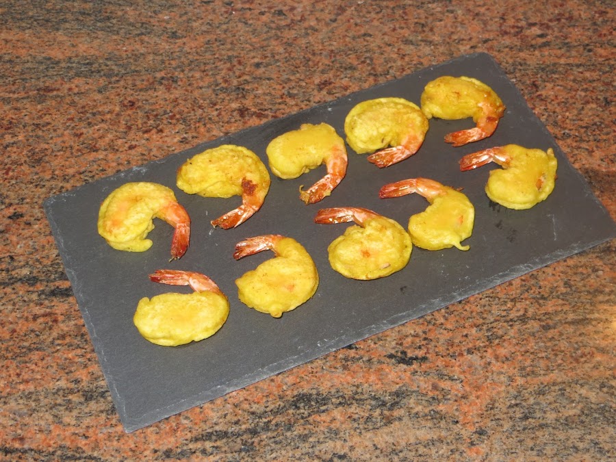 Ponemos el aceite que hayamos elegido a calentar y vamos mojando las gambas en la mezcla y las ponemos a freír. Hacerlo en varias tandas, ya que crecerán un poco y si no se os pueden pegar. Le dais un par de vueltas para que se hagan por los dos lados y las sacáis a secar a un papel absorbente para retirar el exceso de aceite. Las colocamos en el plato elegido para servirlas y las acompañamos con la salsa que más os guste.