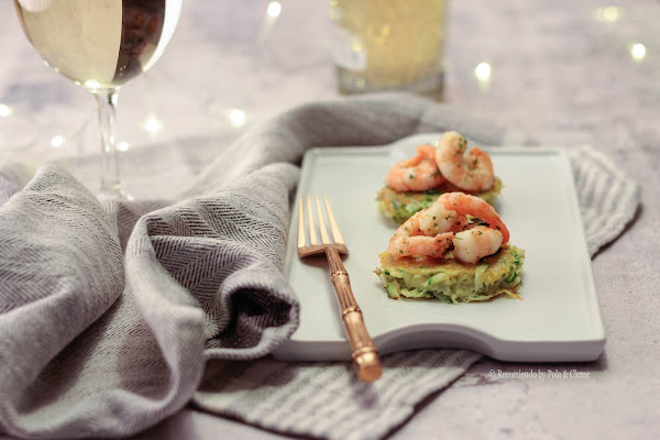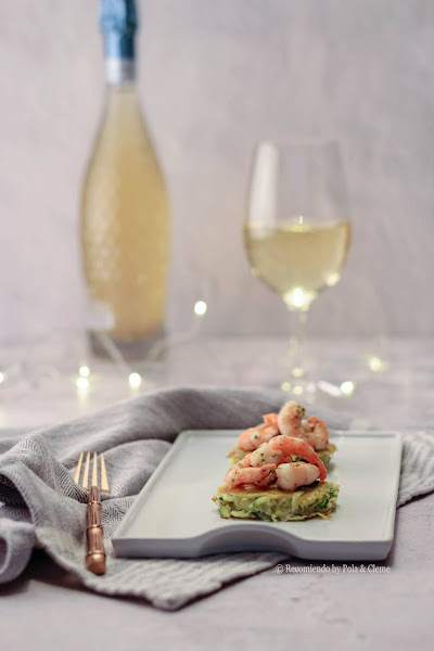 Hola amigos, ya estamos en la cuenta regresiva para las fiestas, así es que te traigo una nueva propuesta, el día de hoy es un Entrante muy fácil, ligero y delicioso, como todo lo que te he presentado hasta el momento . Se trata de una Gambas o Camarones sobre una Tortilla de Zapallito Italiano o Calabacín o Zucchini.