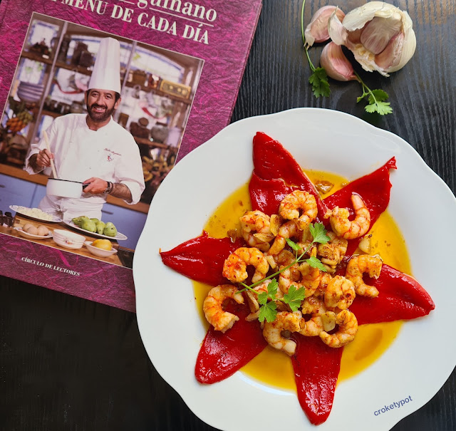 Y es que esta receta es suya, repasando libros de cocina que ya tienen unos años, he encontrado este recetario de Carlos Arguiñano, y me han llamado la atención estas gambas, las he probado y os aseguro que os gustará.