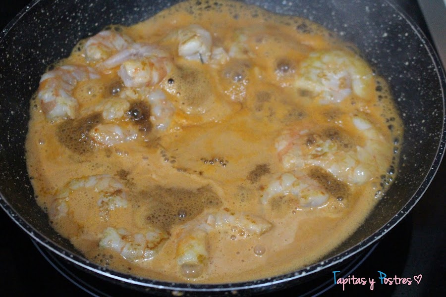 Tengo debilidad por las gambas, me encantan cocidas, a la plancha, en arroces, guisos..de cualquier manera me resultan muy apetecibles. Esta receta en concreto me resultaba muy parecida a nuestras gambas al pil-pil. Pero la preparación es distinta y la salsa lleva un componente especial: la salsa de soja.