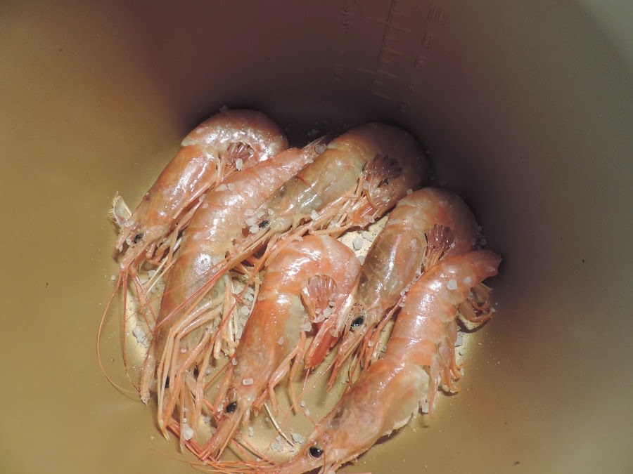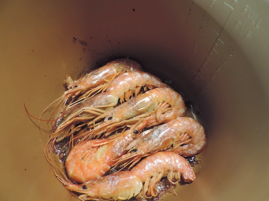 Echamos los gambones y ponemos la tapa doradora 8 minutos, 175º.