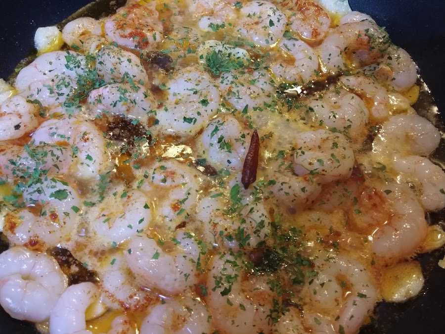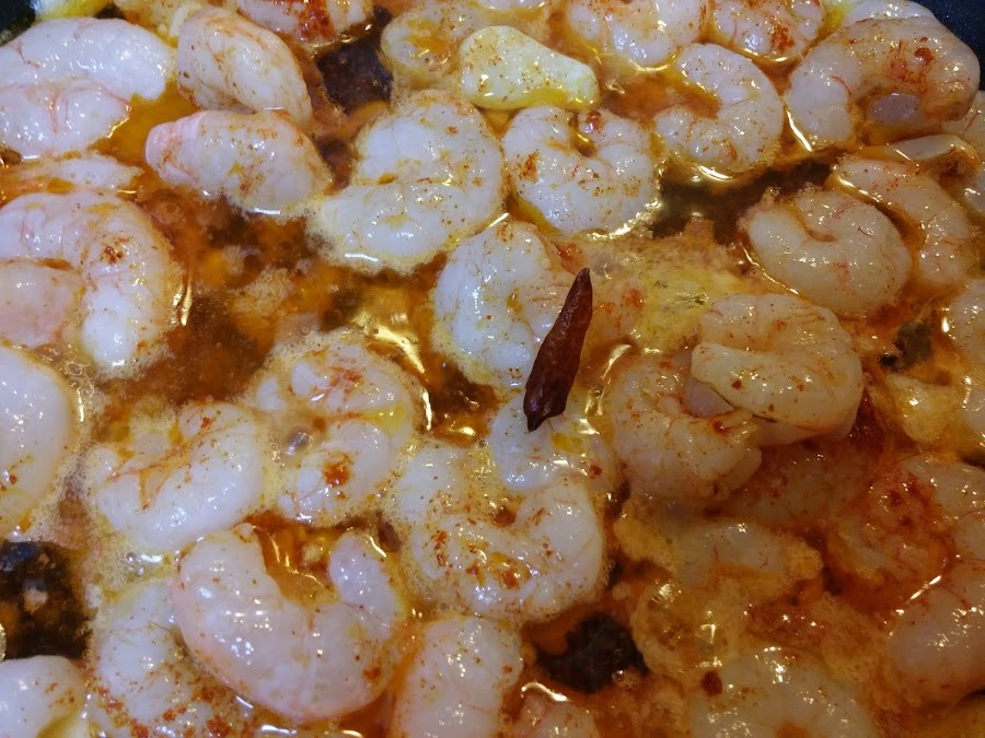 Ahora dejamos a fuego medio que se hagan bien las gambas.