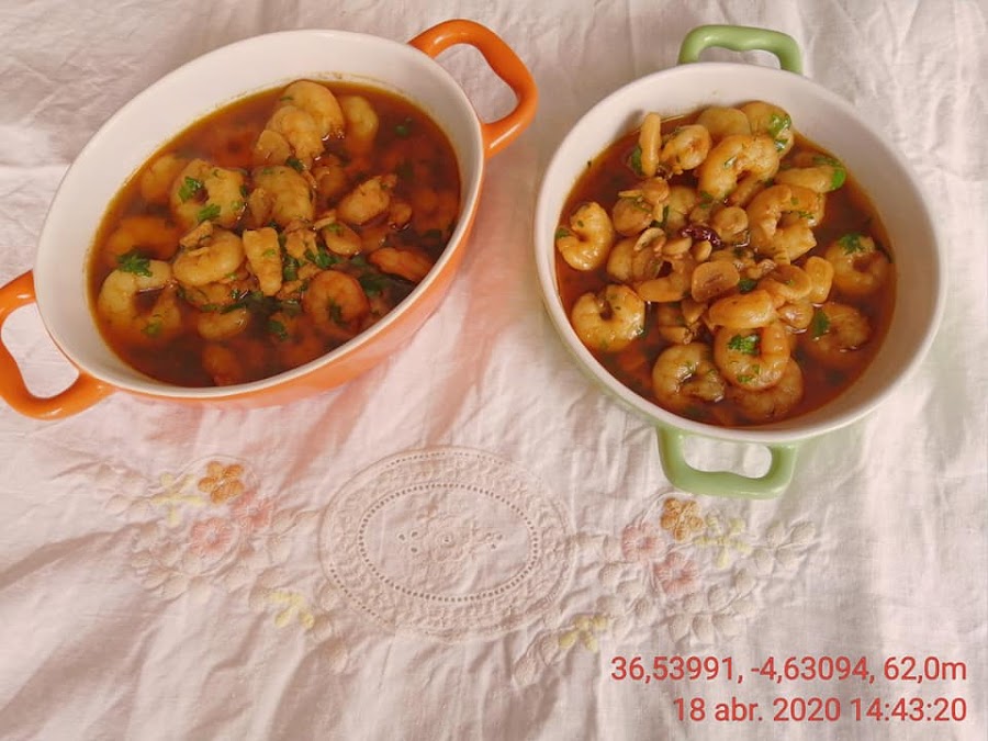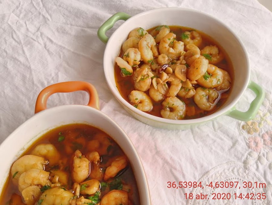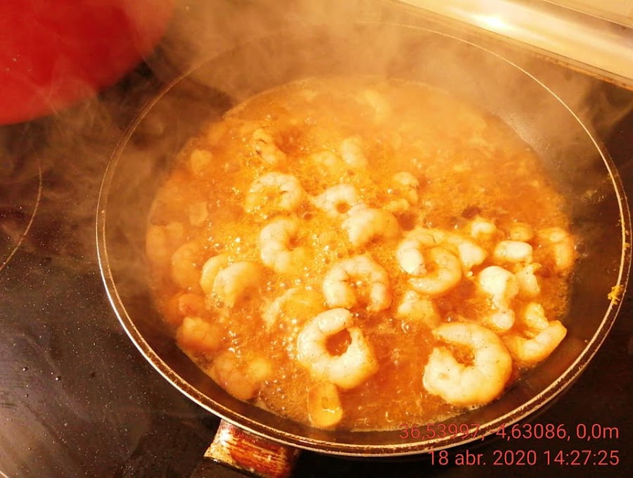 1 kg. de gambas frescas o congeladas. Las mias eran congeladas.