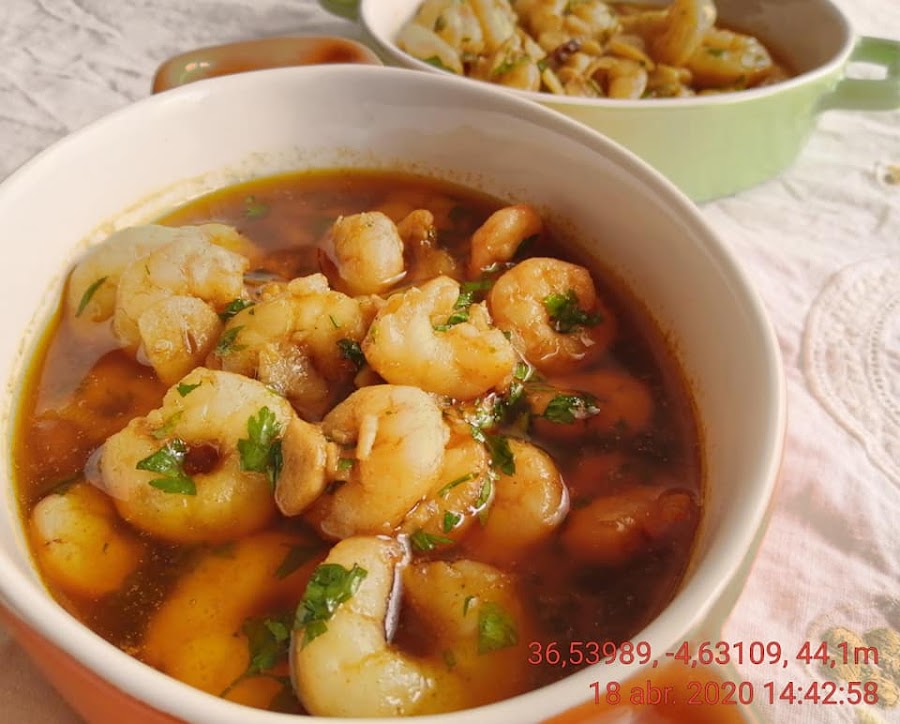 Dejamos reducir hasta que las gambas esten tiernas y buscamos pan para mojar.........¡¡¡¡¡¡¡¡¡¡¡¡