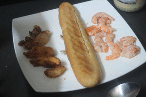 El sábado nos complicamos muy poco la vida en la cocina, preparamos una ensalada y consumimos unos restos de chipirones congelados y lo que restaba de una caja de gambas cocidas congeladas.