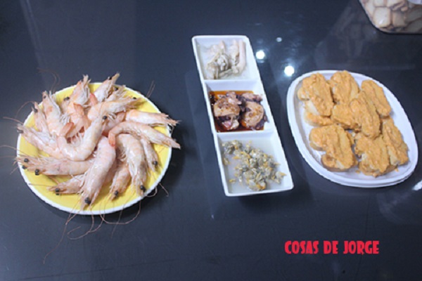 Volcamos las tres latas de pescado en un recipiente apto para servir, aderezamos los berberechos y las navajas con zumo de limón y solo nos falta el tenedor para ir pinchando las conservas y mancharnos los dedos pelando gambas.
