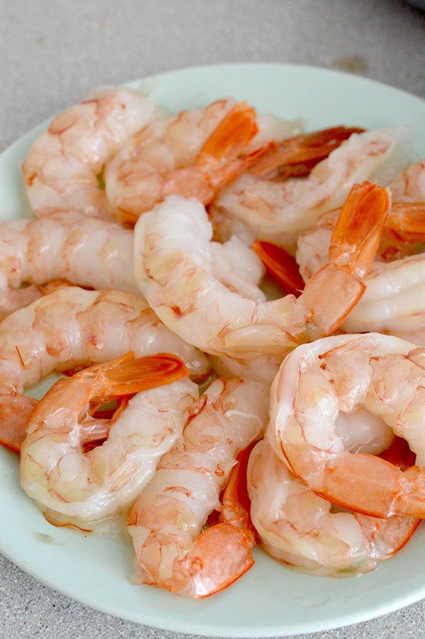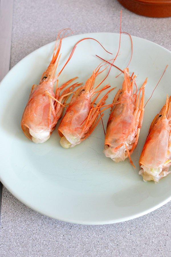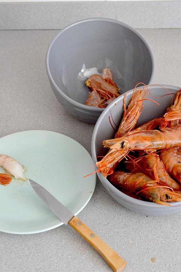 Lo primero de todo es pelar las gambas y retirar el intestino de las mismas con la ayuda de un cuchillo.
