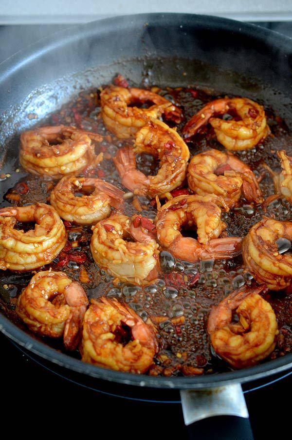 Estas gambas que os muestro hoy son muy rápidas de hacer y tienen un toque picante oriental que a mi me encanta, y es que cuando hechas siracha a las cosas, cogen un punto de los mas delicioso. Yo he elegido gambones, porque me parecen mas jugosos que las gambas blancas, al ser tan carnosos están de muerte y ademas son económicos ya que podéis comprarlos congelados y quedan riquísimos!!
