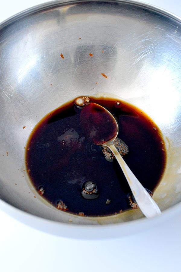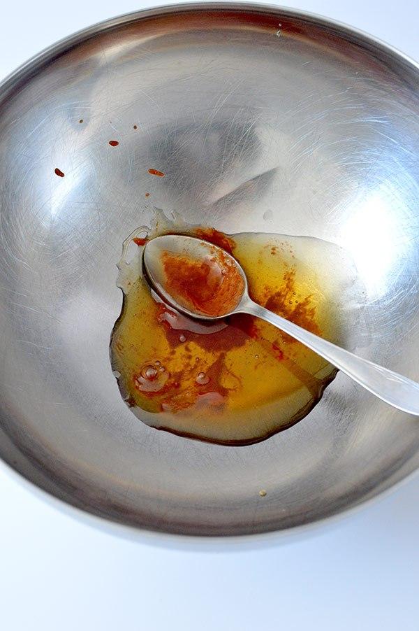 En un bol añadimos la miel y la siracha, junto con la salsa de soja.