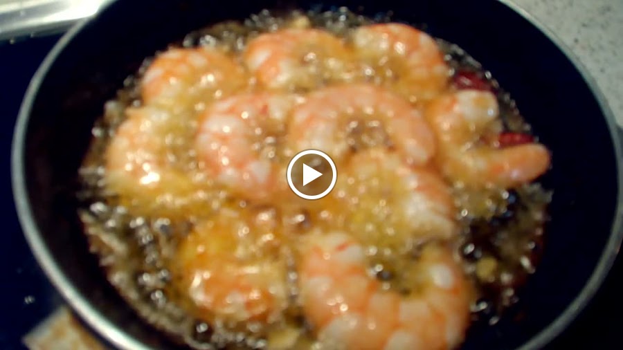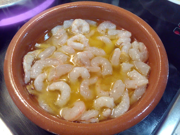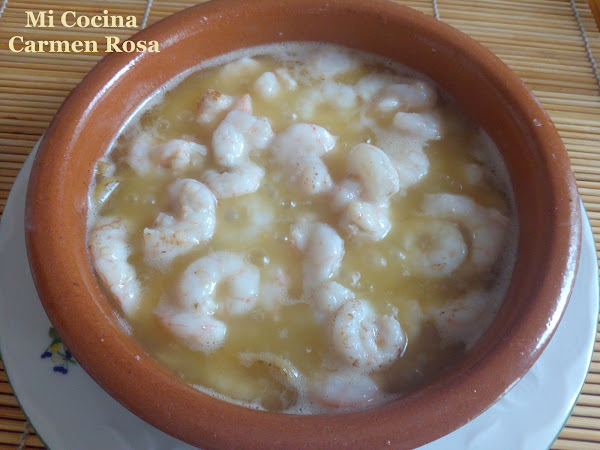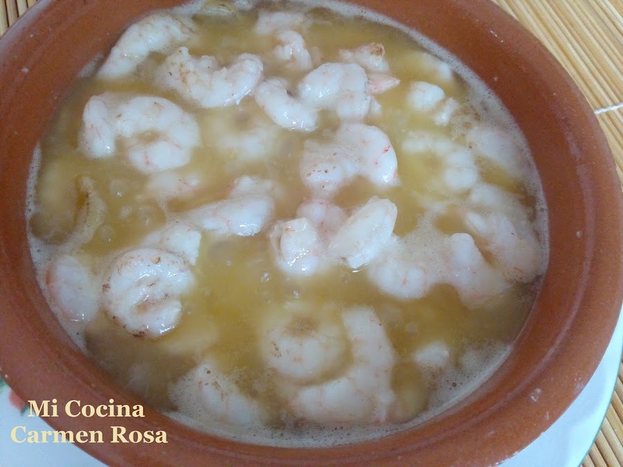 pero hay un viejo refrán que dice: A falta de pan, buenas son tortas; pues bien, he de reconocer que de vez en cuando, también preparo al ajillo unos langostinos, que les aseguro están ricos, ricos, ricos.....
