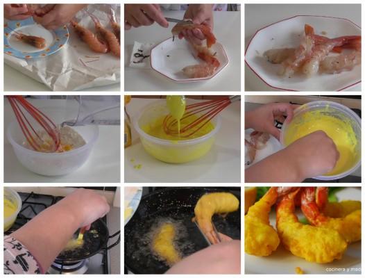 Elaboración de las gambas Orly o a la gabardina: