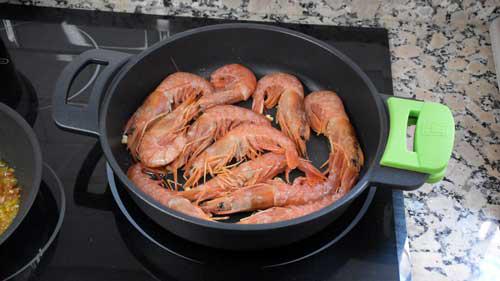 12. Mezclamos, dejamos que los gambones se empapen bien unos segundos más, los apartamos y servimos al momento.