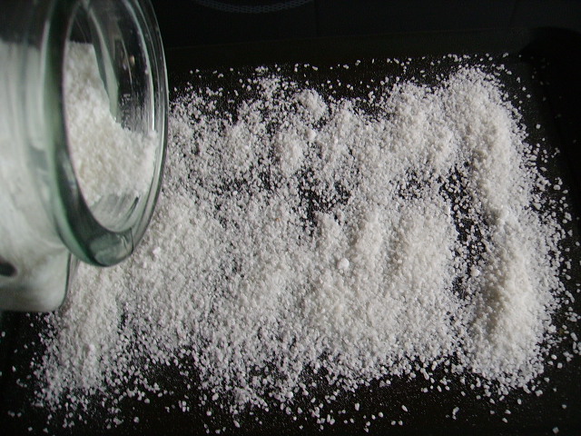 2.- Cubrimos con una capa de sal gorda de 1/2 cm toda la superficie de la plancha donde los vamos a hacer.