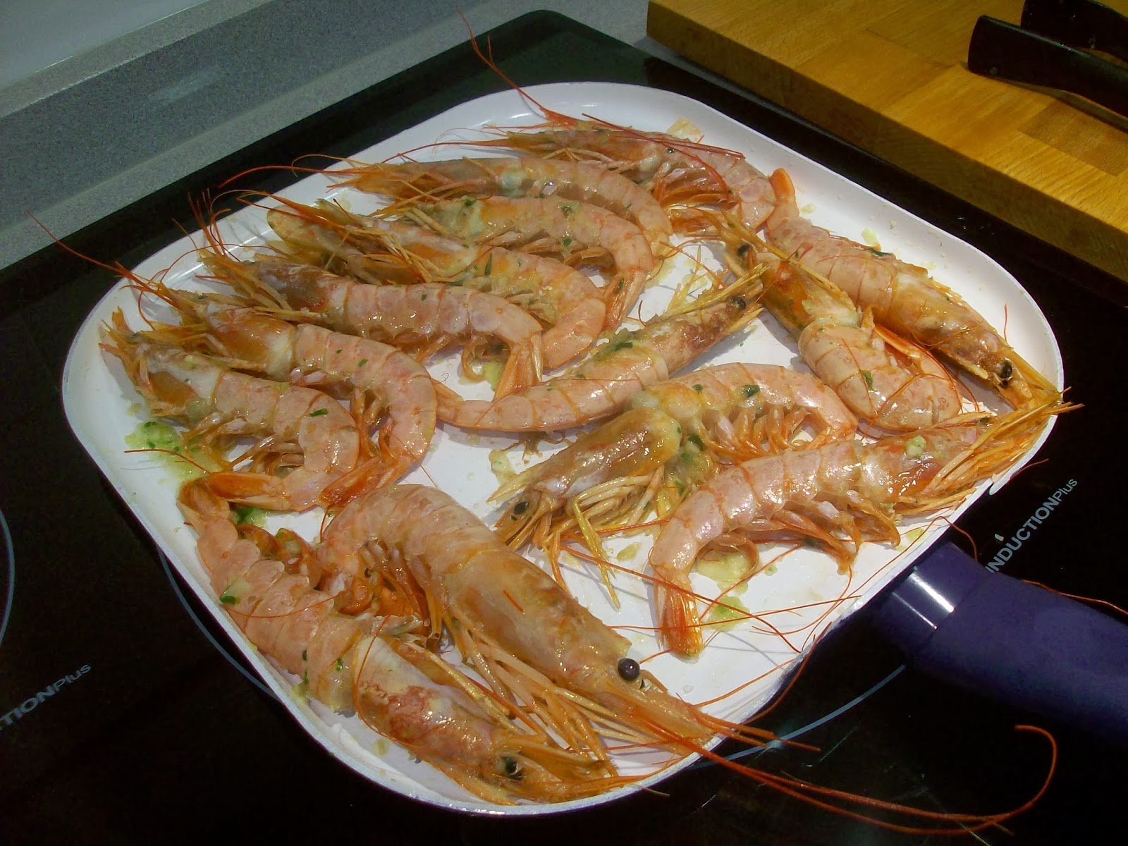 Ya ha pasado la media hora coge una brocha de cocinero y untamos con el aceite los gambones uno por uno y lo ponemos en la sartén. Cuando tengamos puesto todos los gambones en la sartén, cogemos sal gorda y echamos por encima de los gambones. Ya solo nos queda ponerlo a fuego medio y darlos la vuelta para que se hagan por los dos lados.