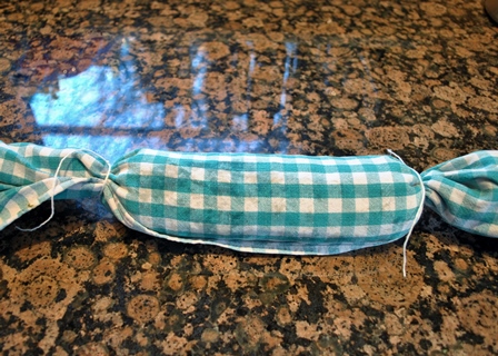 Enrollar en forma de cilindro y atar los extremos con cuerda de cocina como si de un caramelo se tratara.