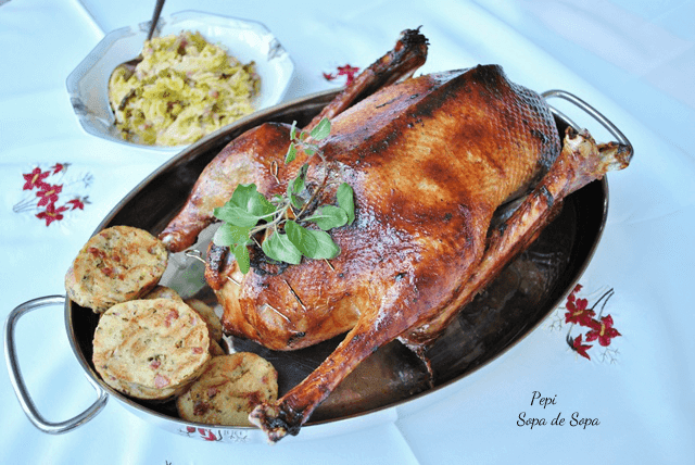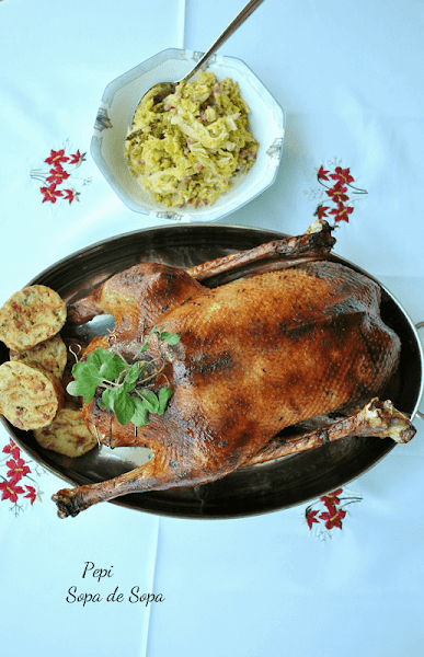 No he hecho una foto con el ganso trinchado y servido en los platos, porque se me hizo de noche. Y las fotos de noche salen fatales