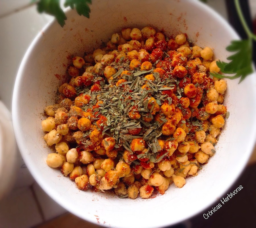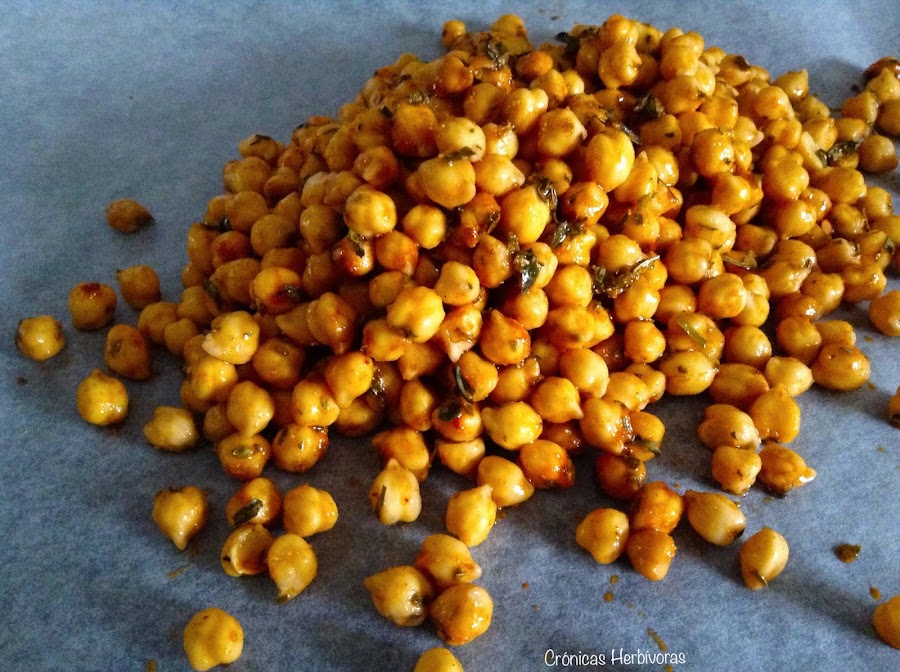 Hornea como mínimo 40 minutos. Esto va a depender de tu horno y de los garbanzos que hayas usado. Si los quieres más crujientes igual debes dejarlos 5 ó 10 minutos más. Nota: Yo personalmente los pruebo con cuidado y cuando están en el punto que me gusta, apago el horno y los dejo en reposo 5 min. Puedes consumir directamente o esperar a que se enfríen y guardarlos en un bote de cristal.