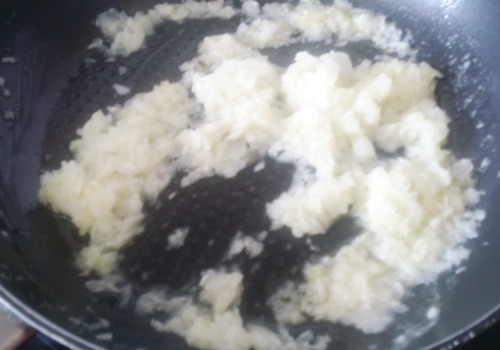 En una cazuela hacemos el sofrito con la cebolla y uno de los ajos.