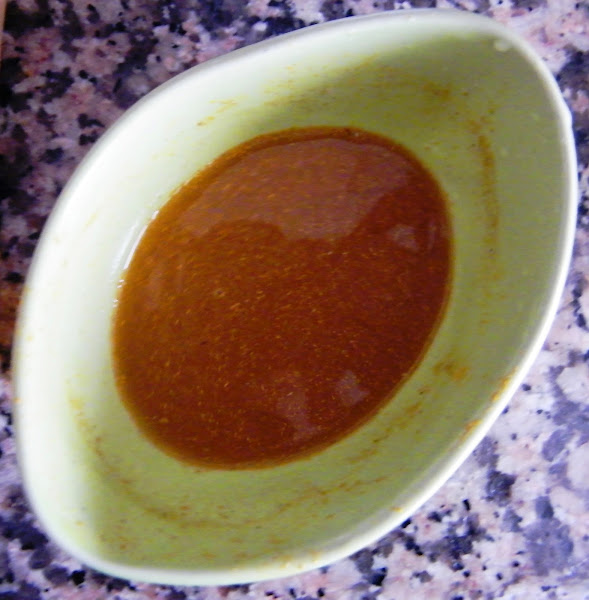 5. En un dedo de agua caliente disolvemos el curry y el comino y lo rociamos sobre los garbanzos y las verduras. Salpimentamos también y mezclamos bien.