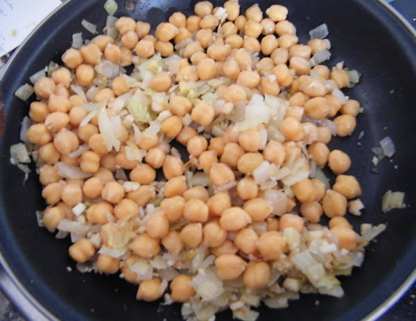 4. Lavamos los garbanzos y los incorporamos. Le damos unas vueltas.