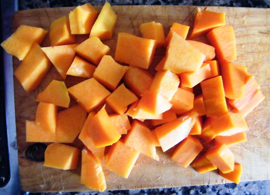 1. Cortamos y pelamos la calabaza y la ponemos a hervir junto con los ramilletes de coliflor.