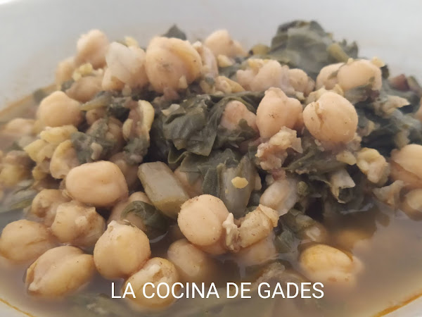 Agregamos las acelgas troceadas, el laurel, cubrimos de agua, sazonamos, añadimos el majado y el comino. Removemos y tapamos la olla rápida 15 minutos.